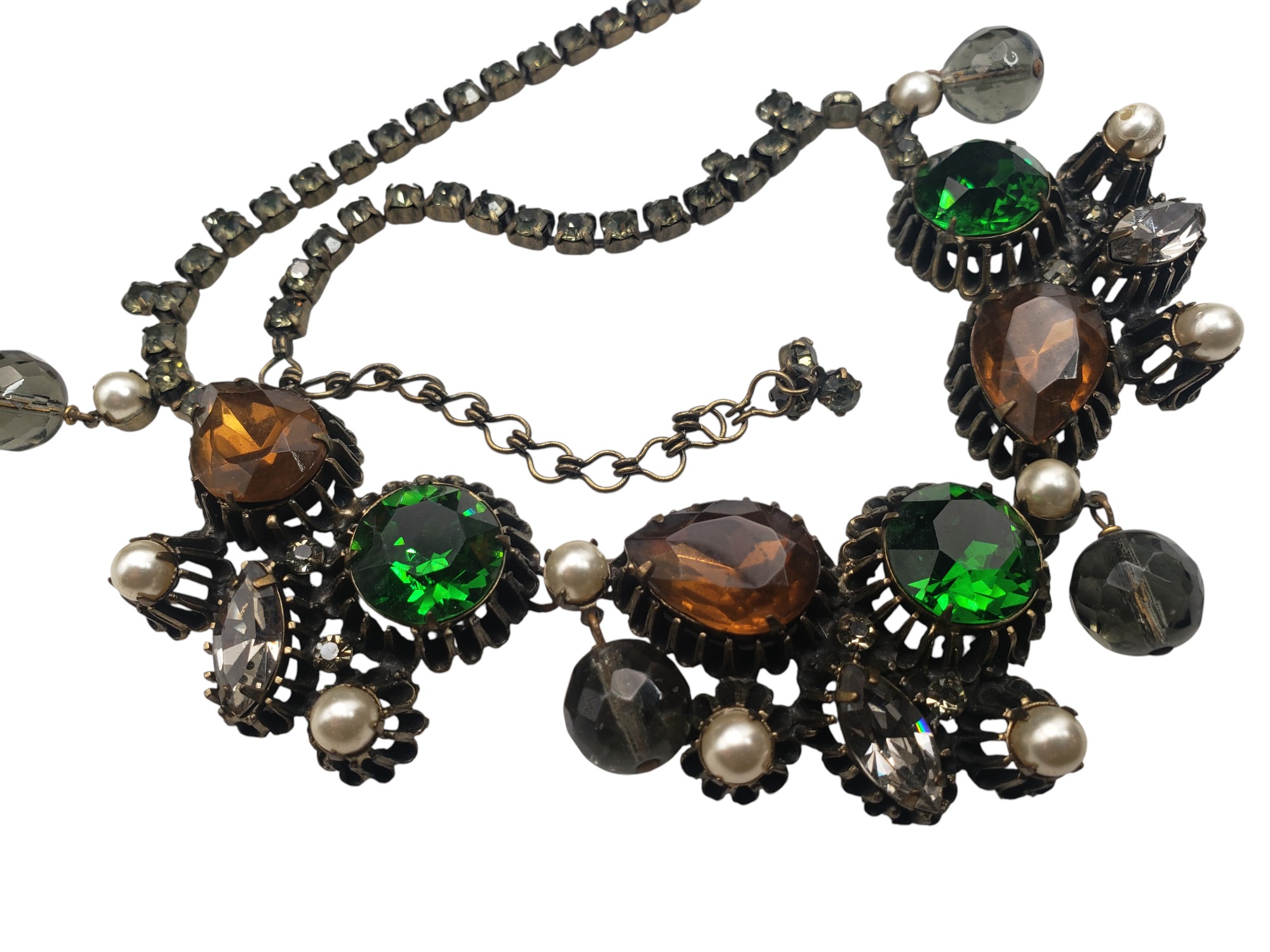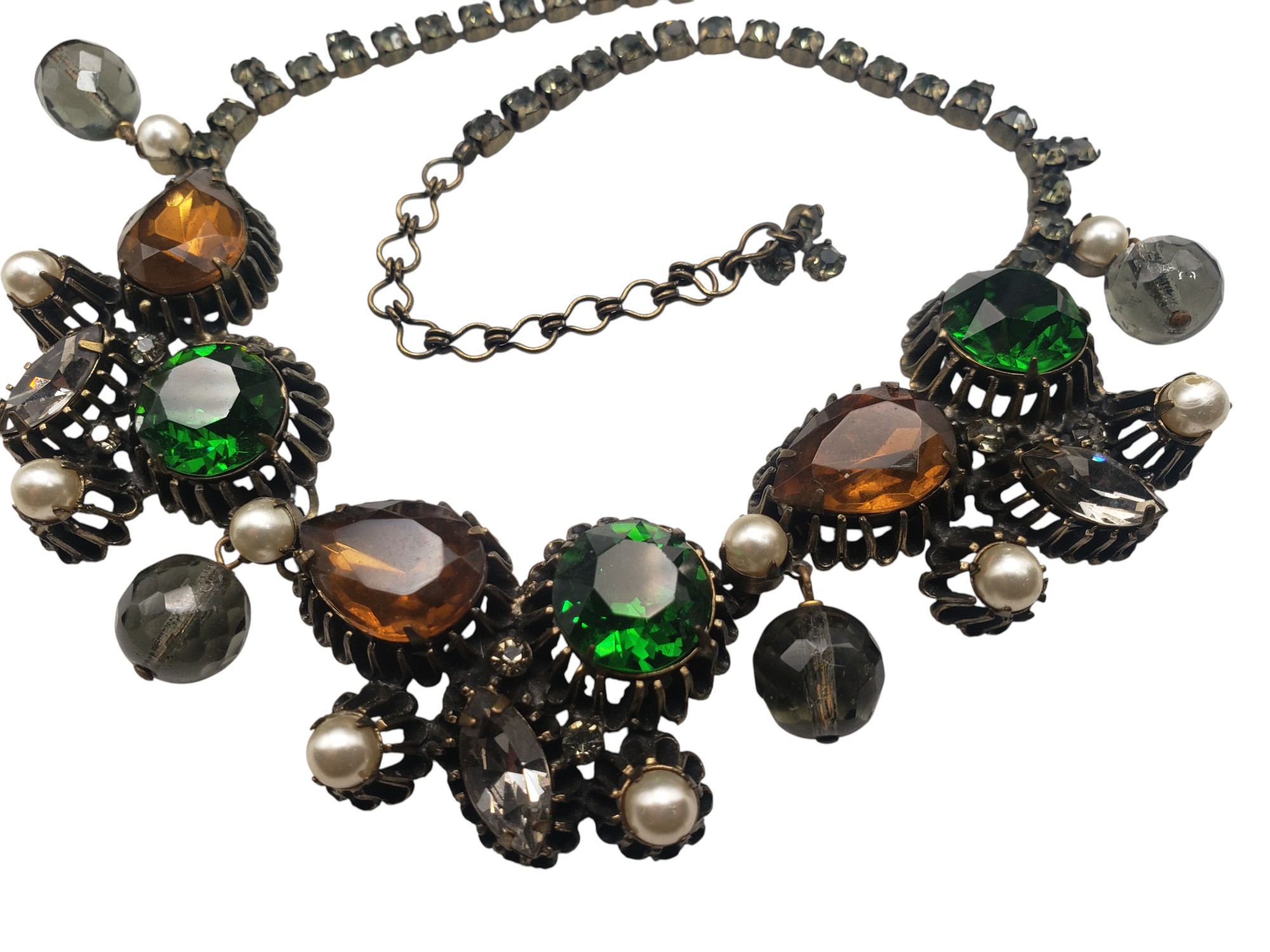 Beautiful Czech Bib Pendants Necklace with Colorful Rhinestones
