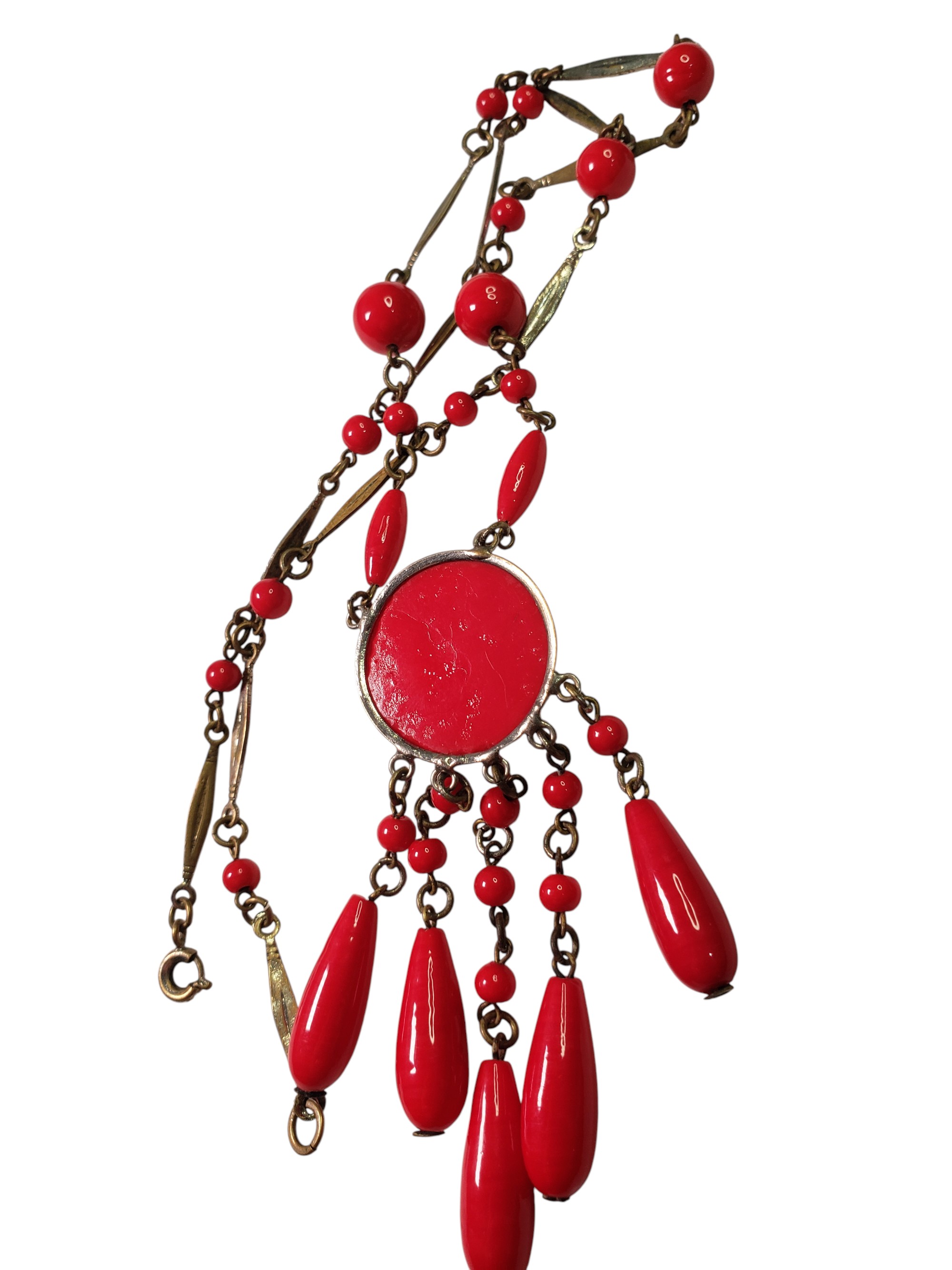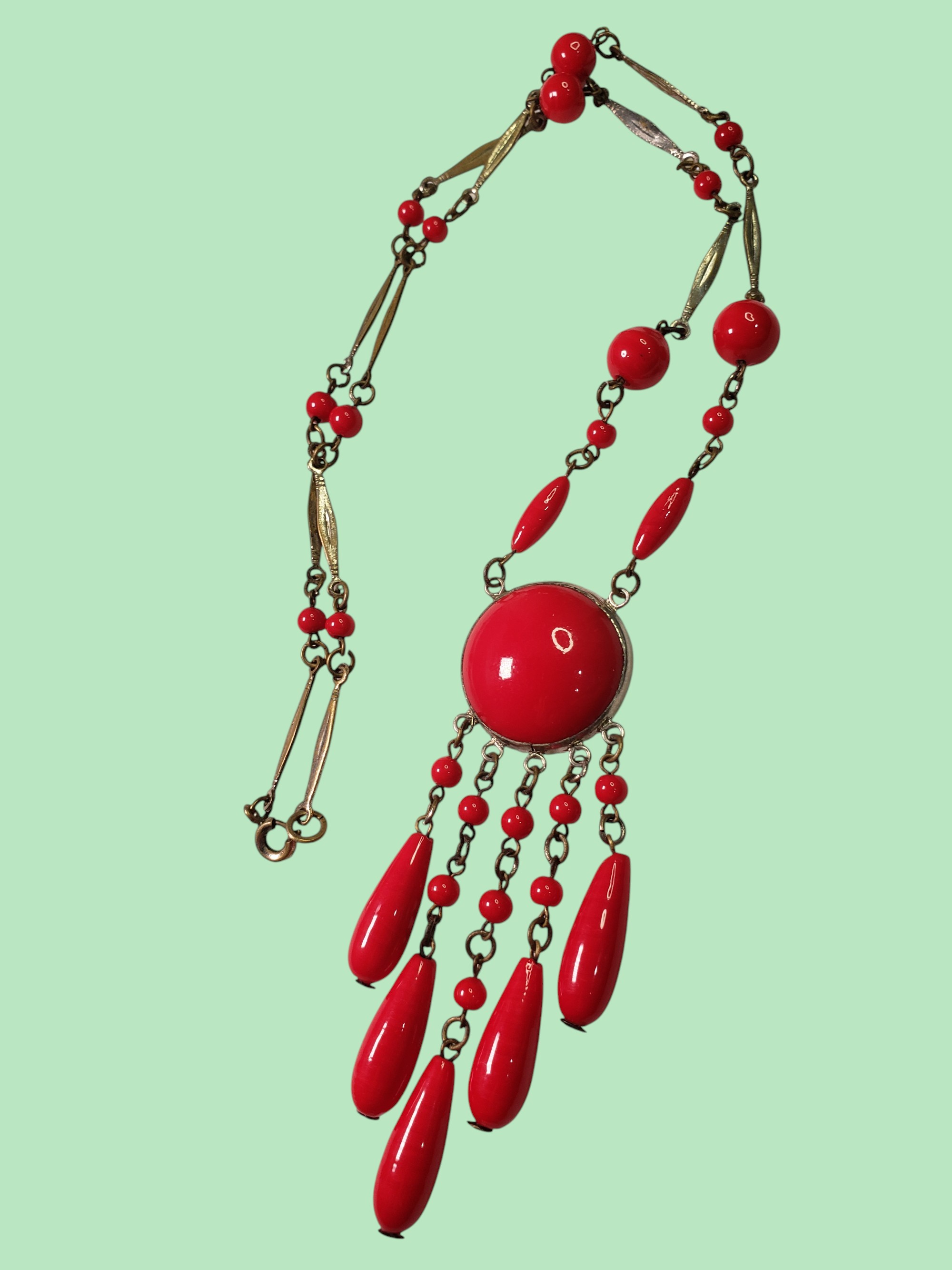 Beautiful Art Deco Red Glass Cabochon Necklace