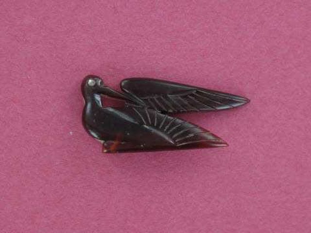 Carved French FRANCE Horn Bird Brooch. I believe it’s not Art nouveau period, but rather newer. It’s still lovely and detailed. . Measures over 2.25″ by 1″. The clasp is rusted, but I had similar brooches and they had a trombone clasp and were signed Depose. Again the clasp is rusted, but the bird itself is intact and fine.