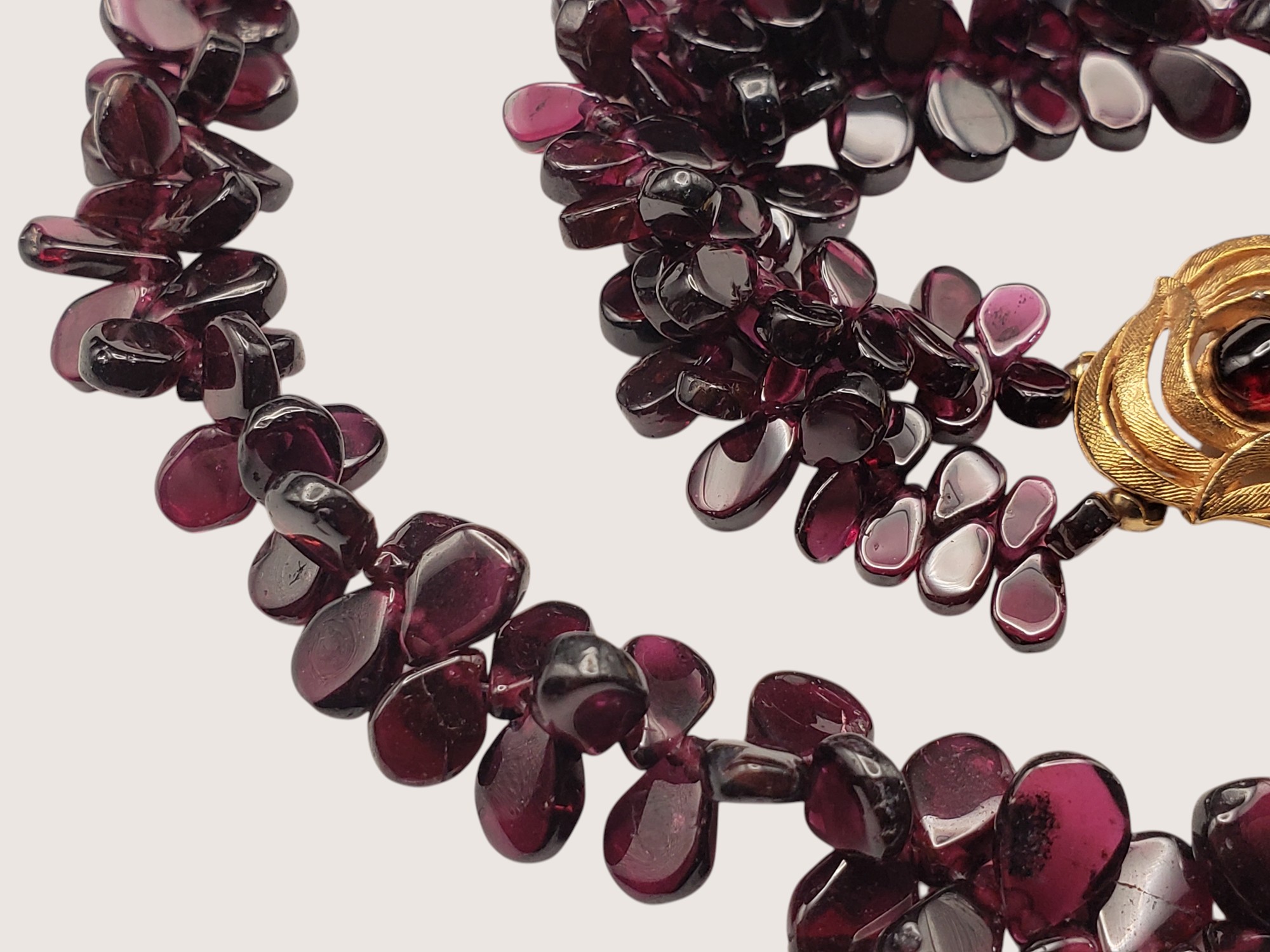 Full Parure with Real Amethysts. The parure includes necklace, bracelet and earrings for pierced ears. Gold tone findings. Necklace measures 15.5″ long. Double strand bracelet with a gorgeous clasp adorned by the same amethyst is 7.75″ long. The drippy earrings are 2.5″ long. Excellent condition and would be a great GIFT IDEA for someone who loves vintage jewelry.