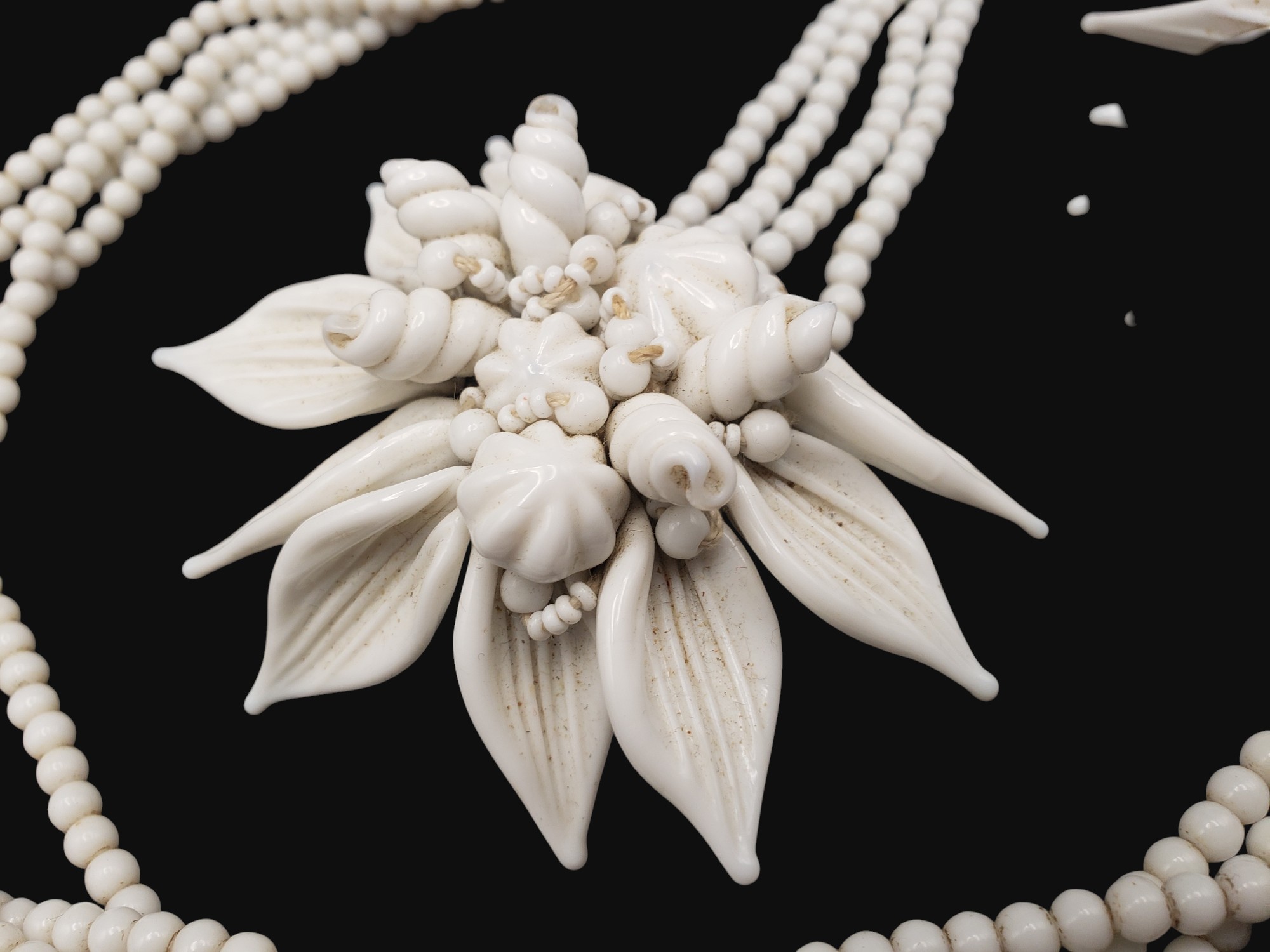 #forgottenromance #jewelry #vintage #vintagecostumejewelry #fashion #arttowear #couture #runway #JewelsOfFantasy #BookPiece #DeannaFarnetiCera #miriamhaskell #haskellJewelry #MilkGlass #necklace #sautoir