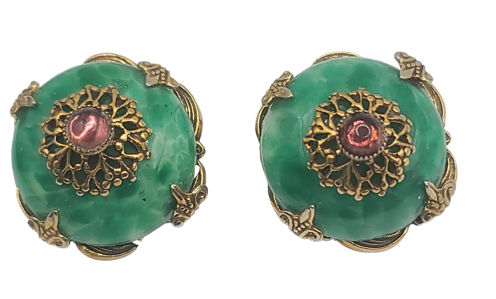 #forgottenromance #jewelry #vintage #vintagecostumejewelry #fashion #arttowear #couture #runway #EtruscanRevival #Jade #PekingGlass #set #parure #necklace #collar #bracelet #earrings